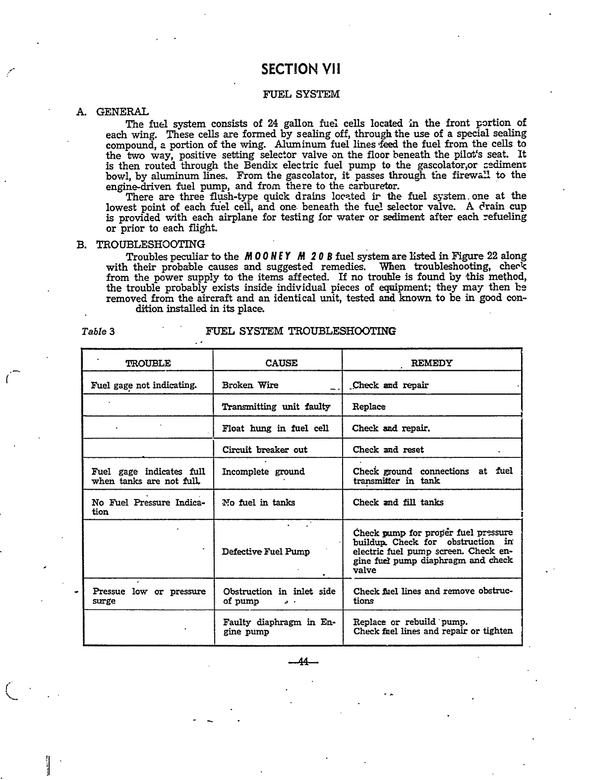 Mooney M20B - General Fuel System Description; Fuel System Troubleshooting