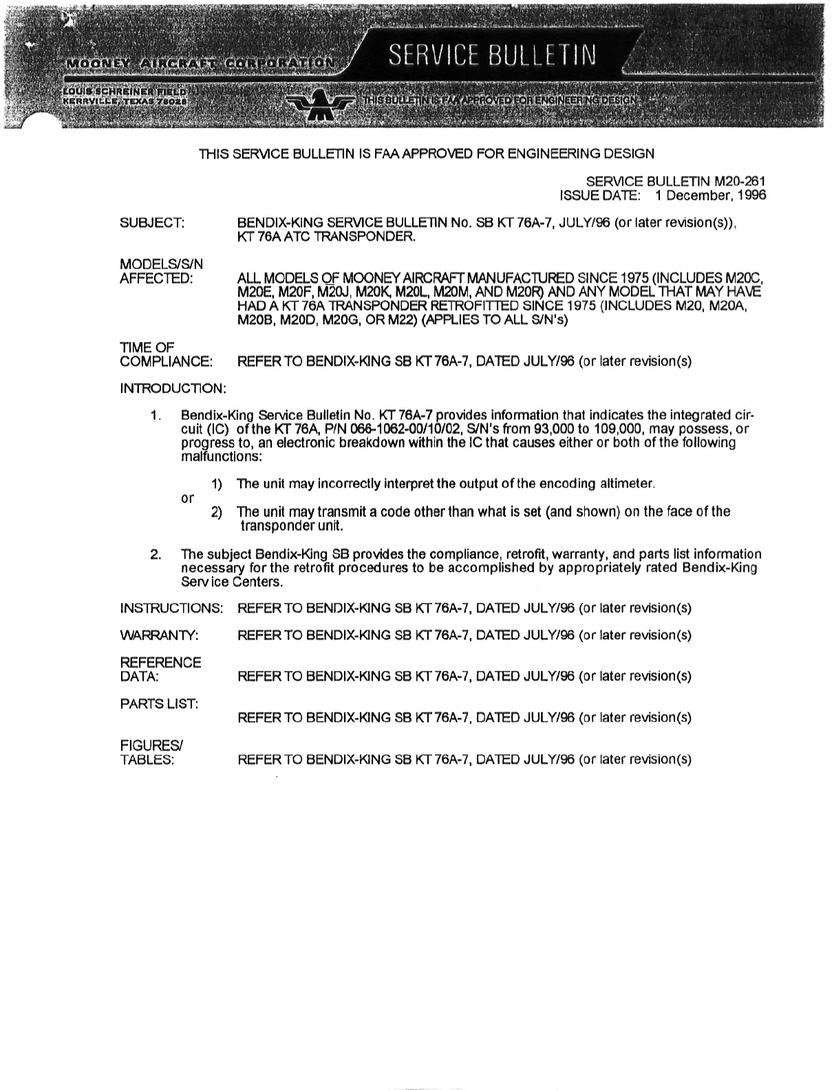 Mooney M20C - Bendix-King KT 76 A Transponder Service; IC Malfunction and Effects; Compliance Reference
