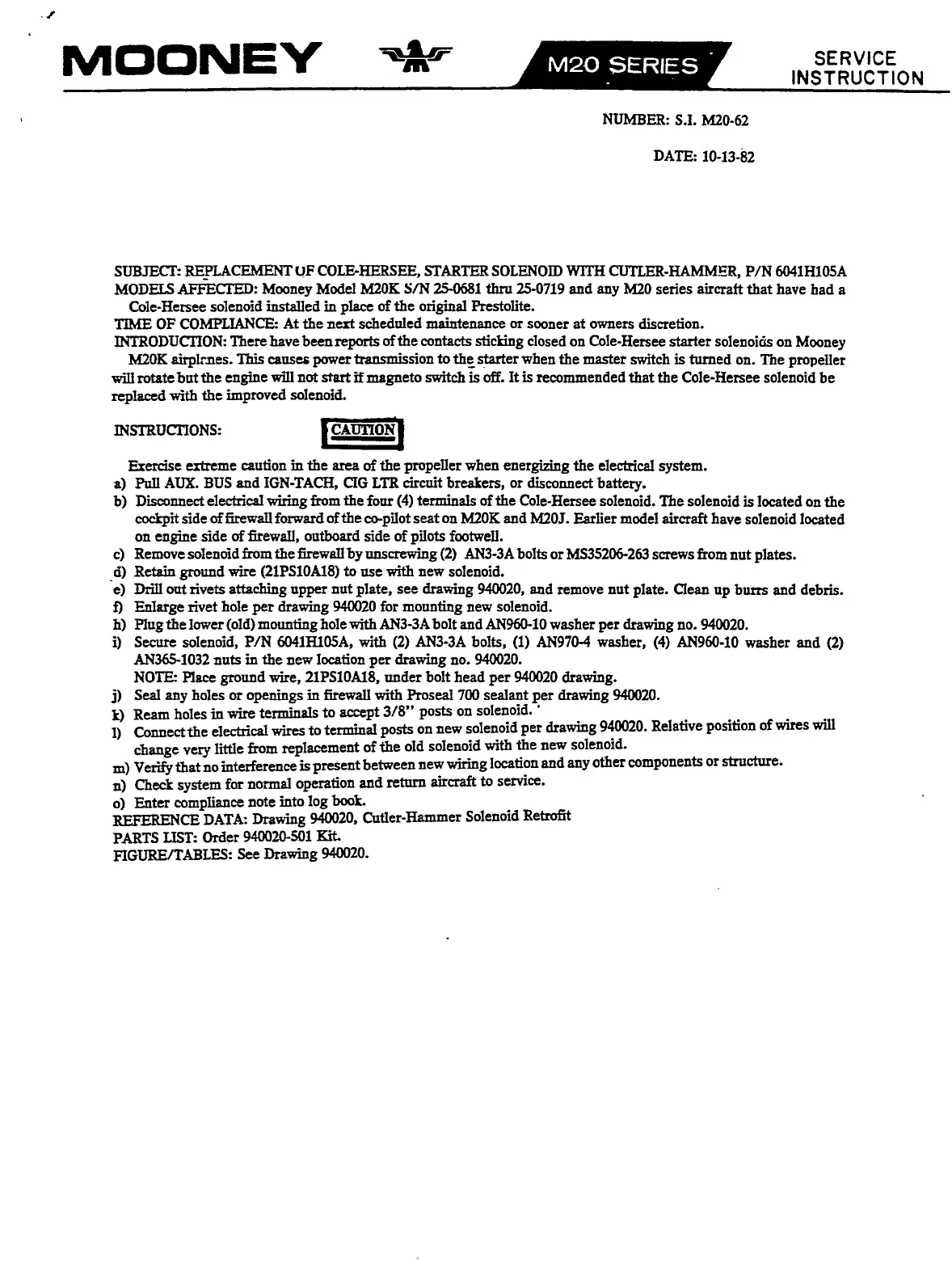Mooney M20C - Starter Solenoid Replacement; Sticking Contact Issue; Installation Steps