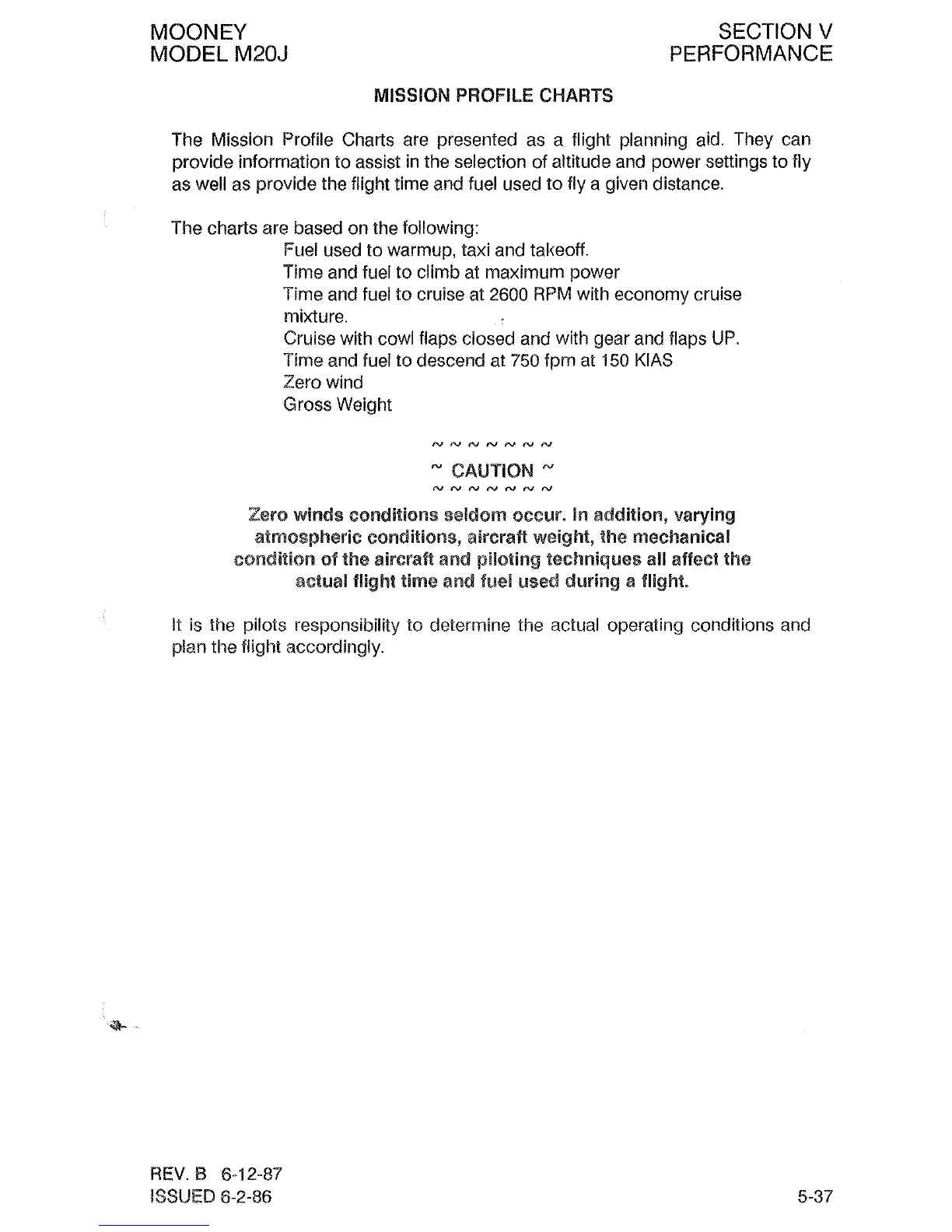 The Mission Profile Charts are presented as a flight planning aid. They can