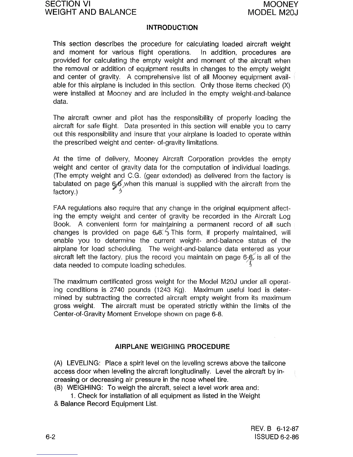 and center of gravity. A comprehensive list of all Mooney equipment avail-
