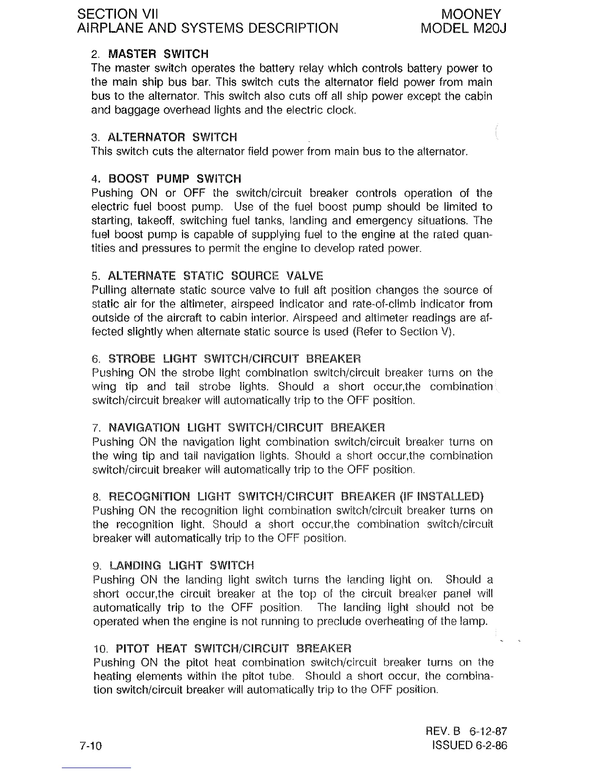bus to the alternator. This switch also cuts off all ship power except the cabin