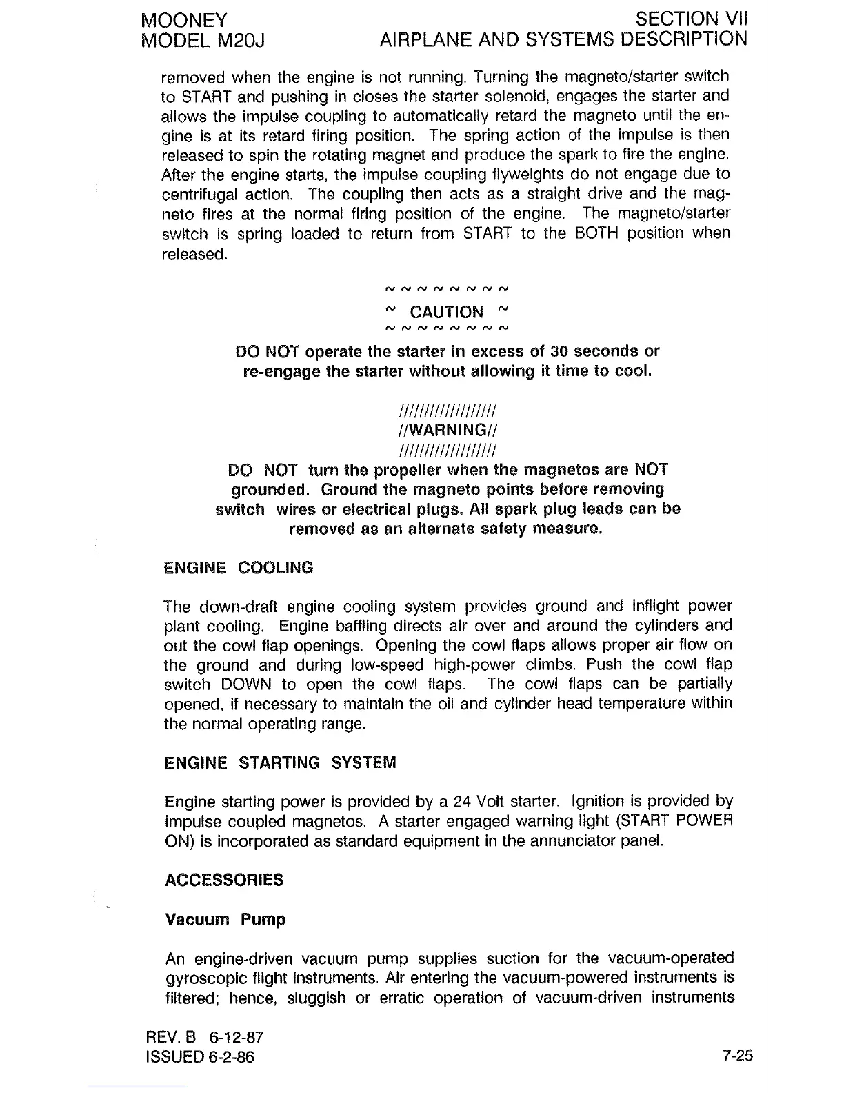 impulse coupled magnetos. A starter engaged warning light (START POWER