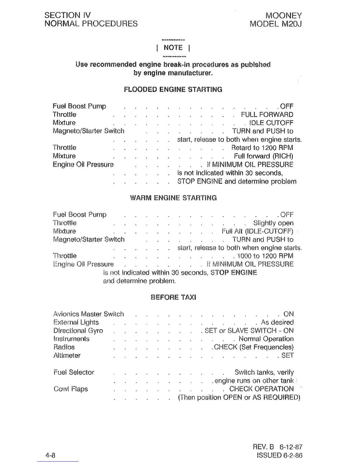 Mooney M20J - Flooded Engine Starting; Warm Engine Starting
