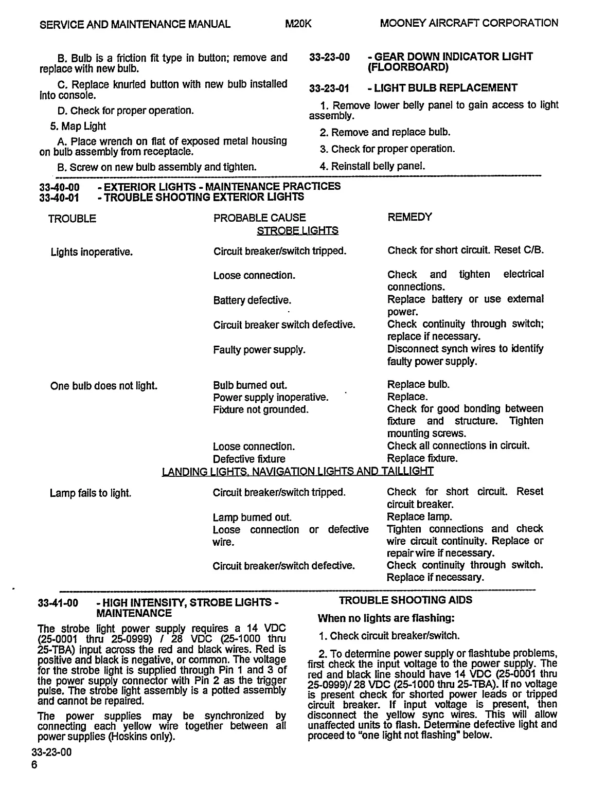 Mooney M20K - Exterior Lights - Maintenance Practices; High Intensity, Strobe Lights Maintenance