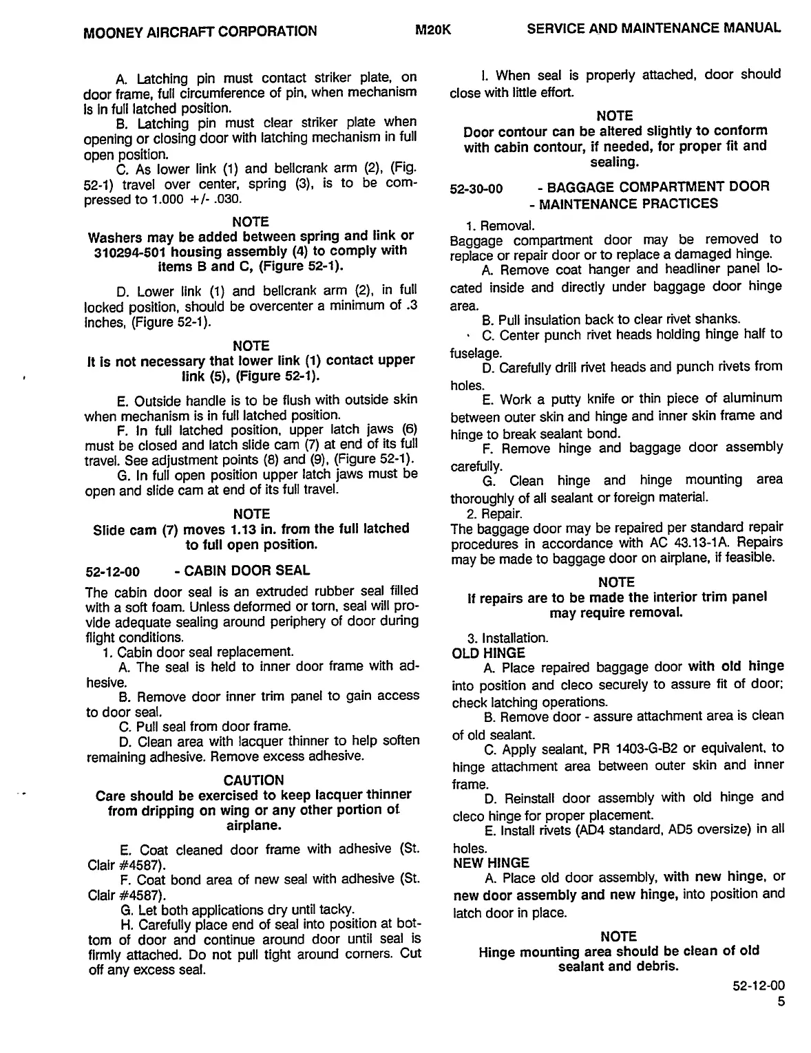 Mooney M20K - Cabin Door Seal; Baggage Compartment Door - Maintenance Practices