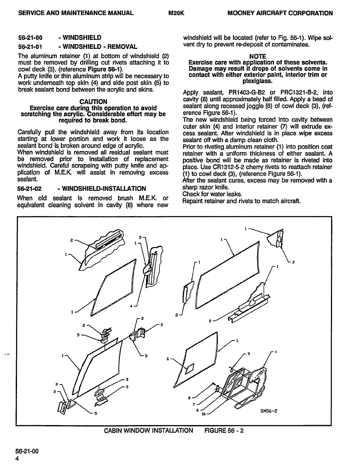 Mooney M20K - Windshield; Windshield - Removal; Windshield-Installation