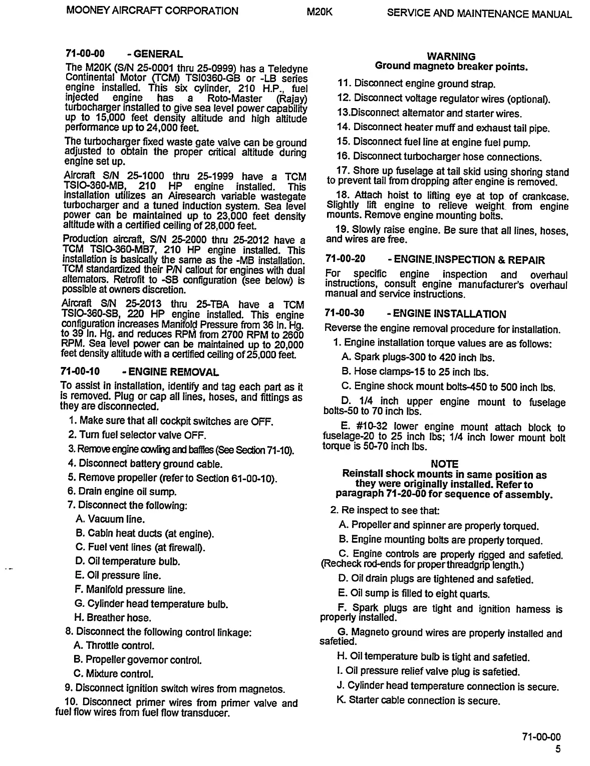 Mooney M20K - General; Engine Removal; Engine Installation