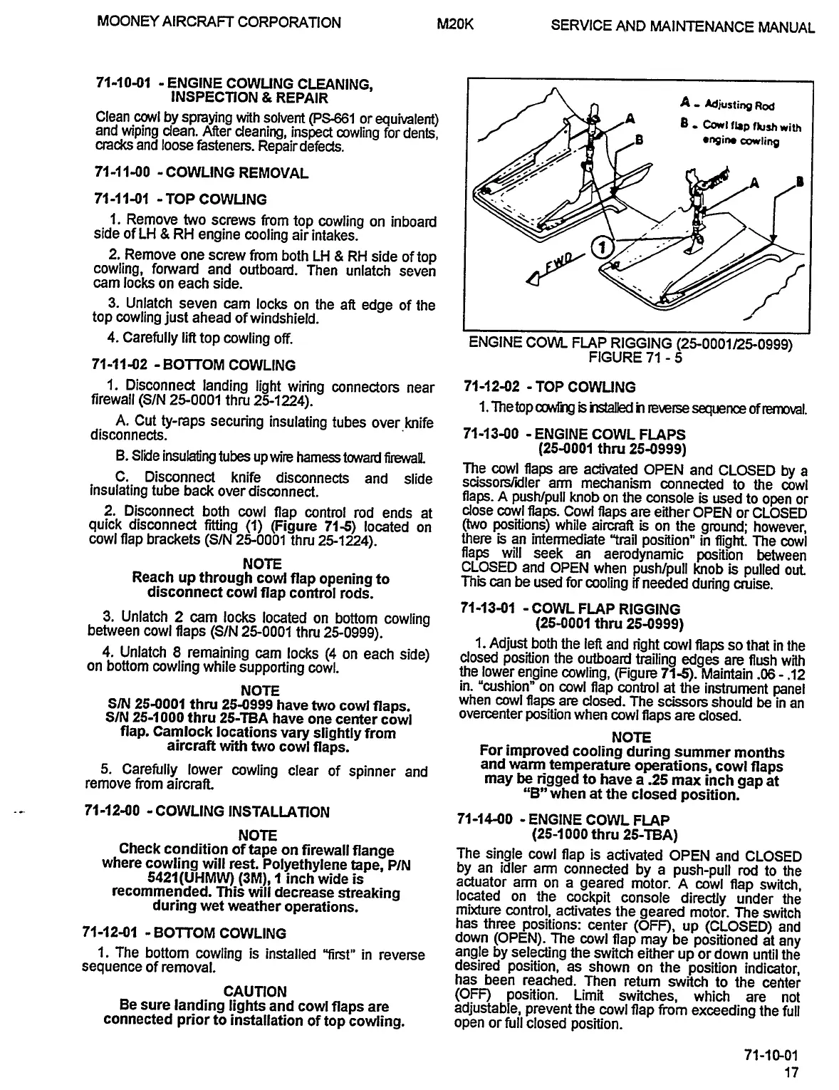 Mooney M20K - 71-11-02 -Bottom Cowling; 71-12-02 -Top Cowling; Cowl Flap Rigging; Engine Cowl Flap (251000 Thru 25-TEA)