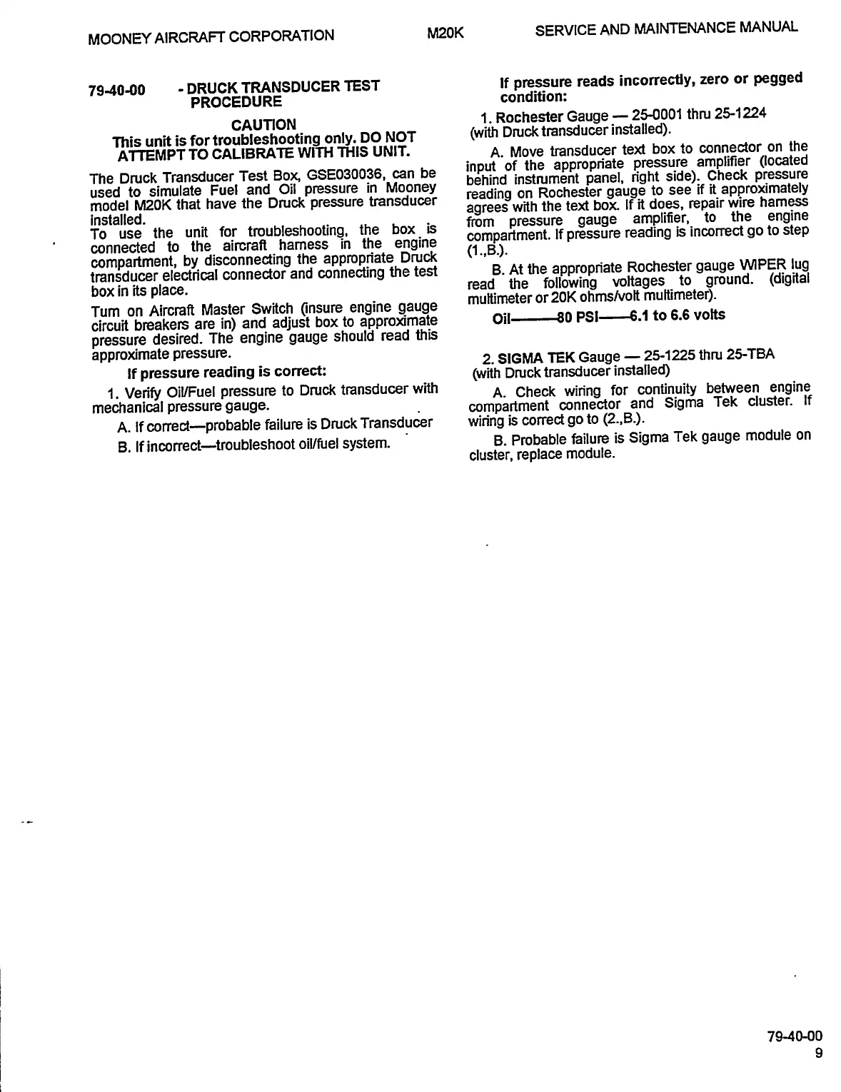 Mooney M20K - Druck Transducer Test Procedure