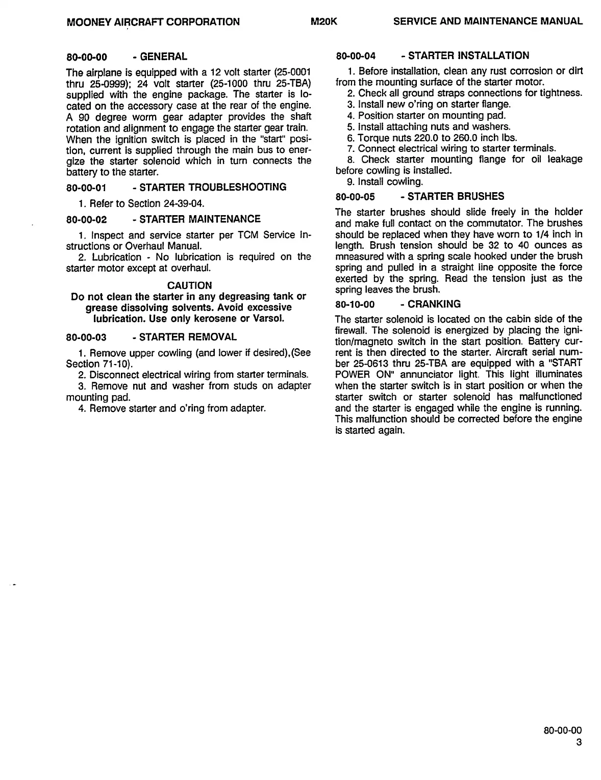 Mooney M20K - General; Starter Trouble Shooting; Starter Maintenance; Starter Removal