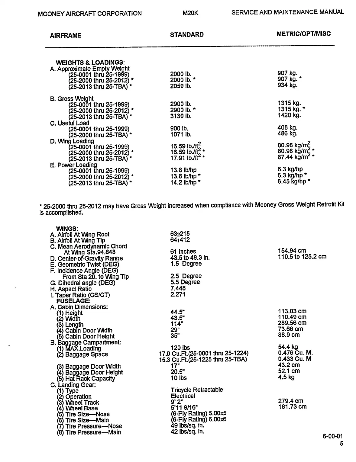 Mooney M20K - Weights & Loadings; Fuselage