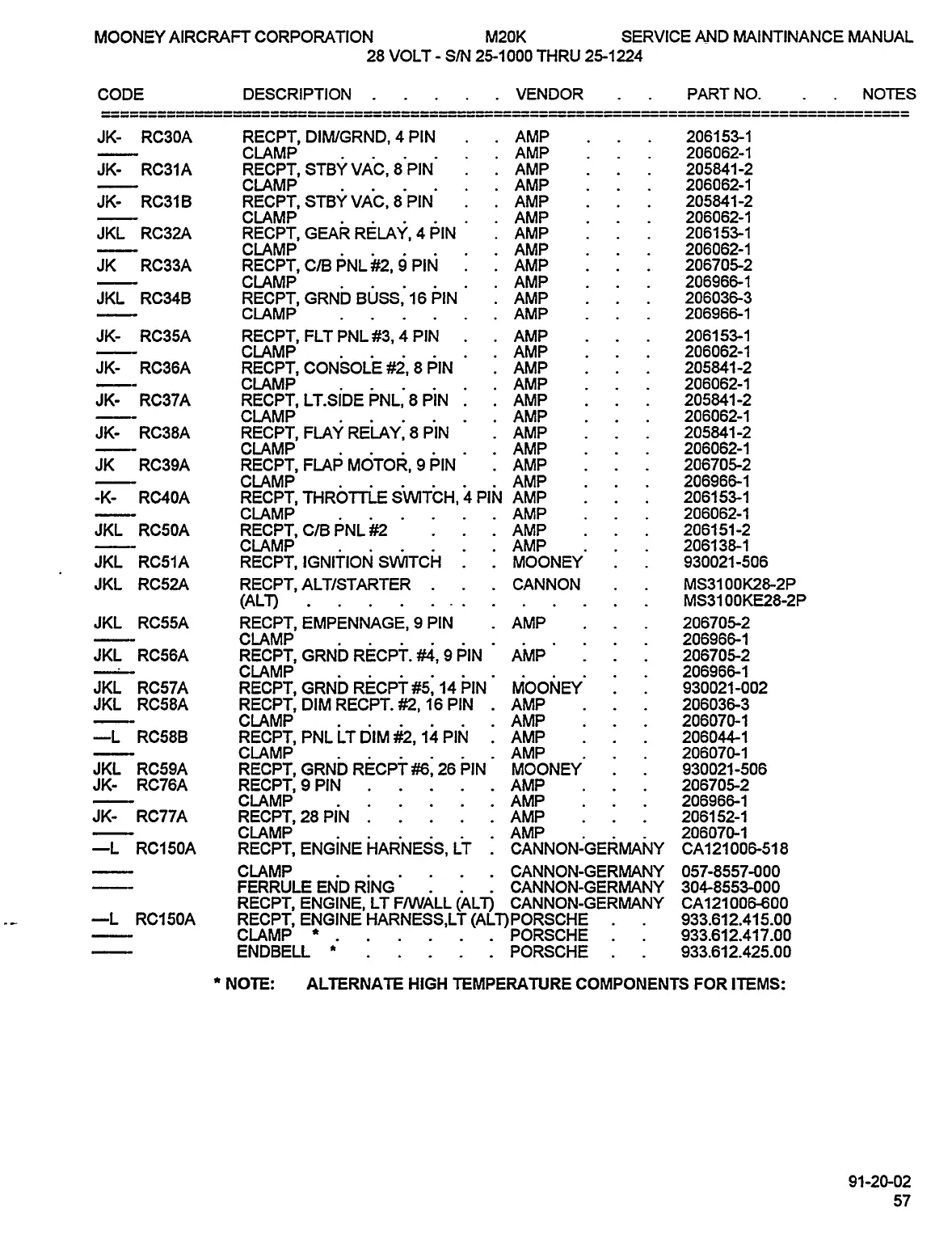 Mooney M20K - Amp 206966-1; Amp Amp; Mooney 930021-001; Mooney 930021-505