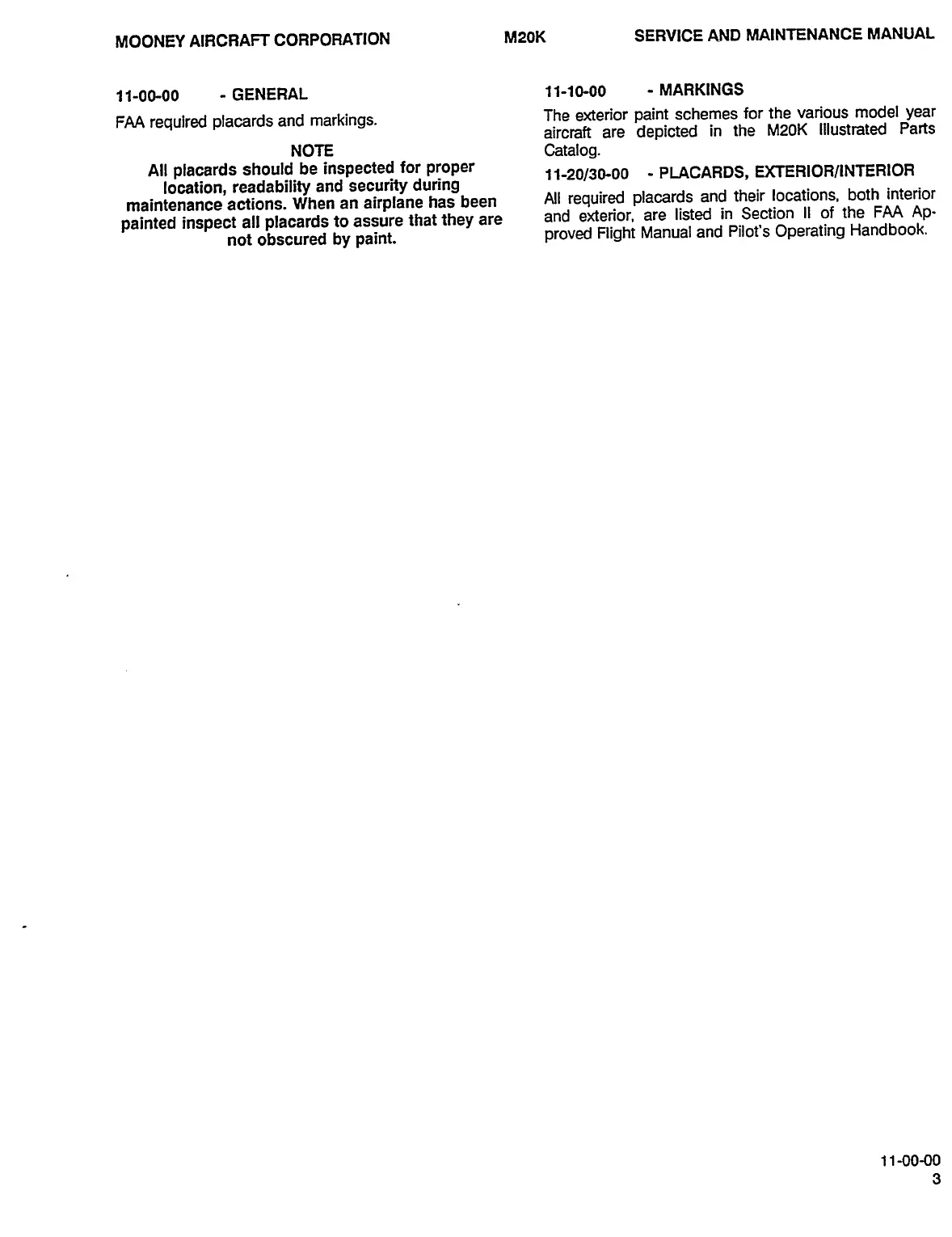 Mooney M20K - General; Placards, Exterior;Interior