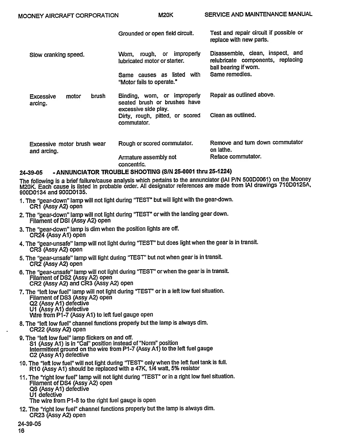 Mooney M20K - Annunciator Trouble Shooting; (SM 25-0001 Thnr 25-0999) Annunciator Trouble Shooting