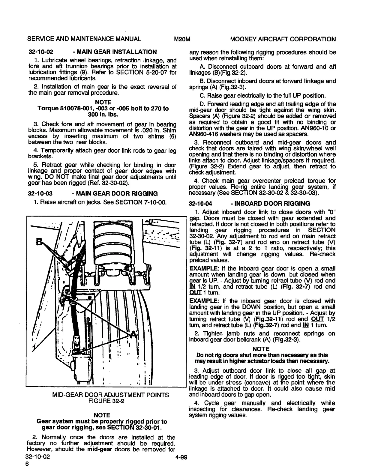 Mooney M20M - Main Gear Door Rigging; Inboard Door Rigging