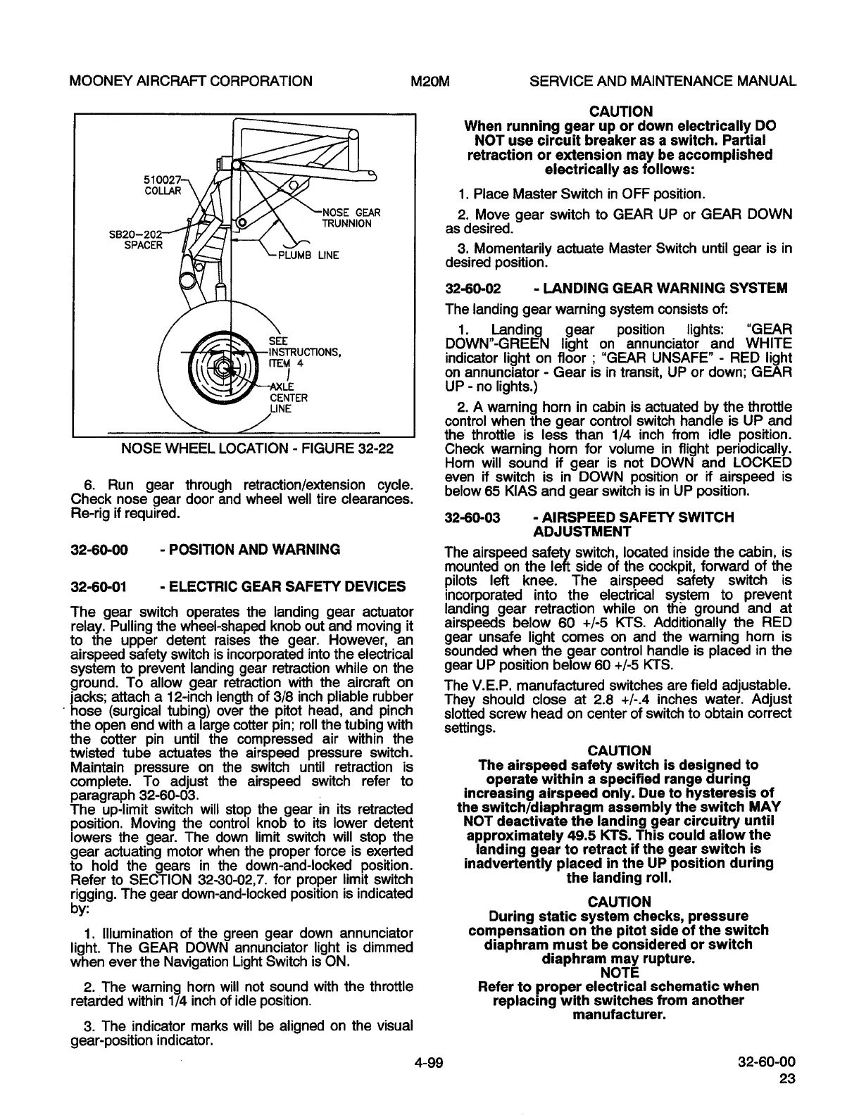 Mooney M20M - Landing Gear Warning System; Airspeed Safety Switch Adjustment