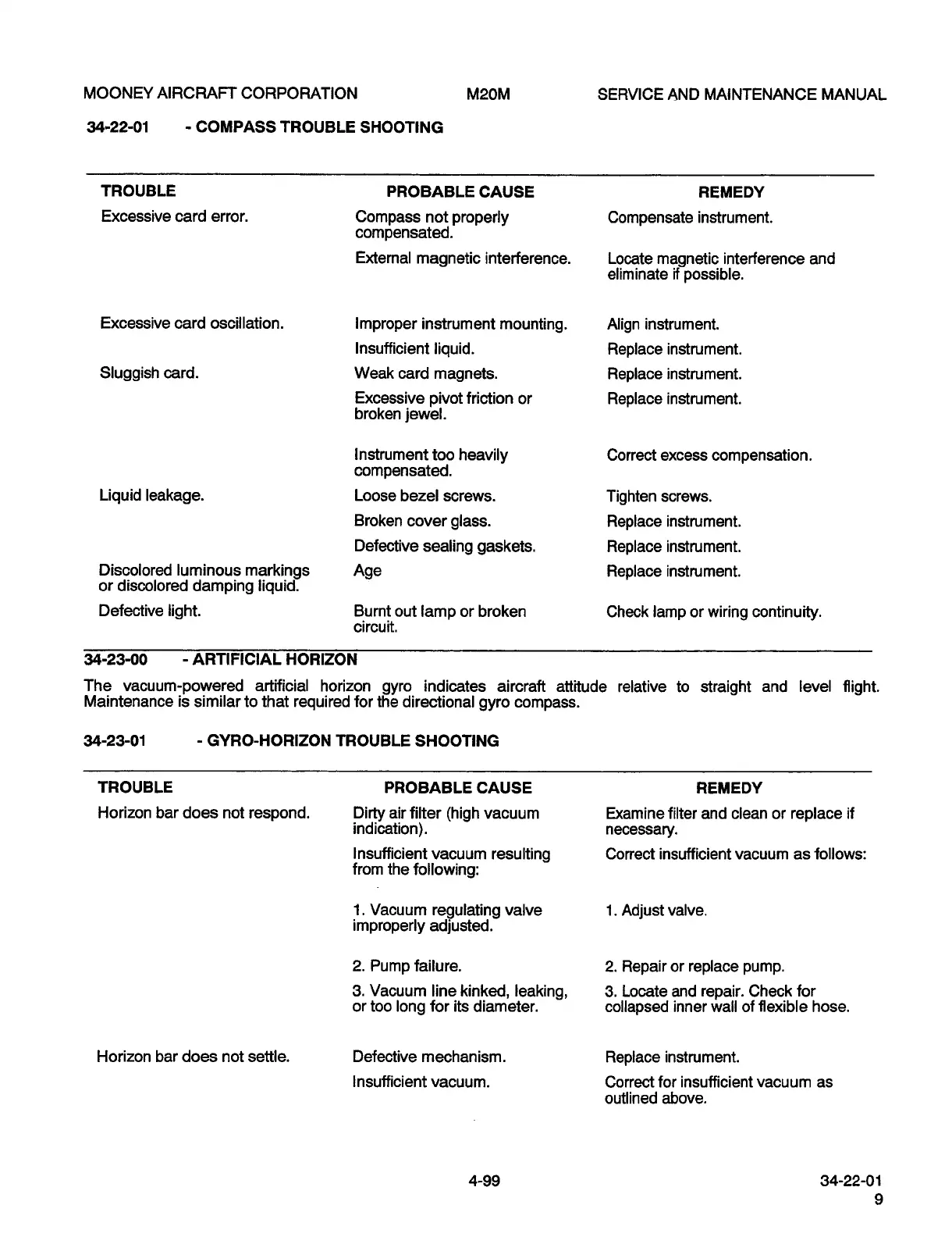 Mooney M20M - Artificial Horizon; Compass-Trouble Shooting