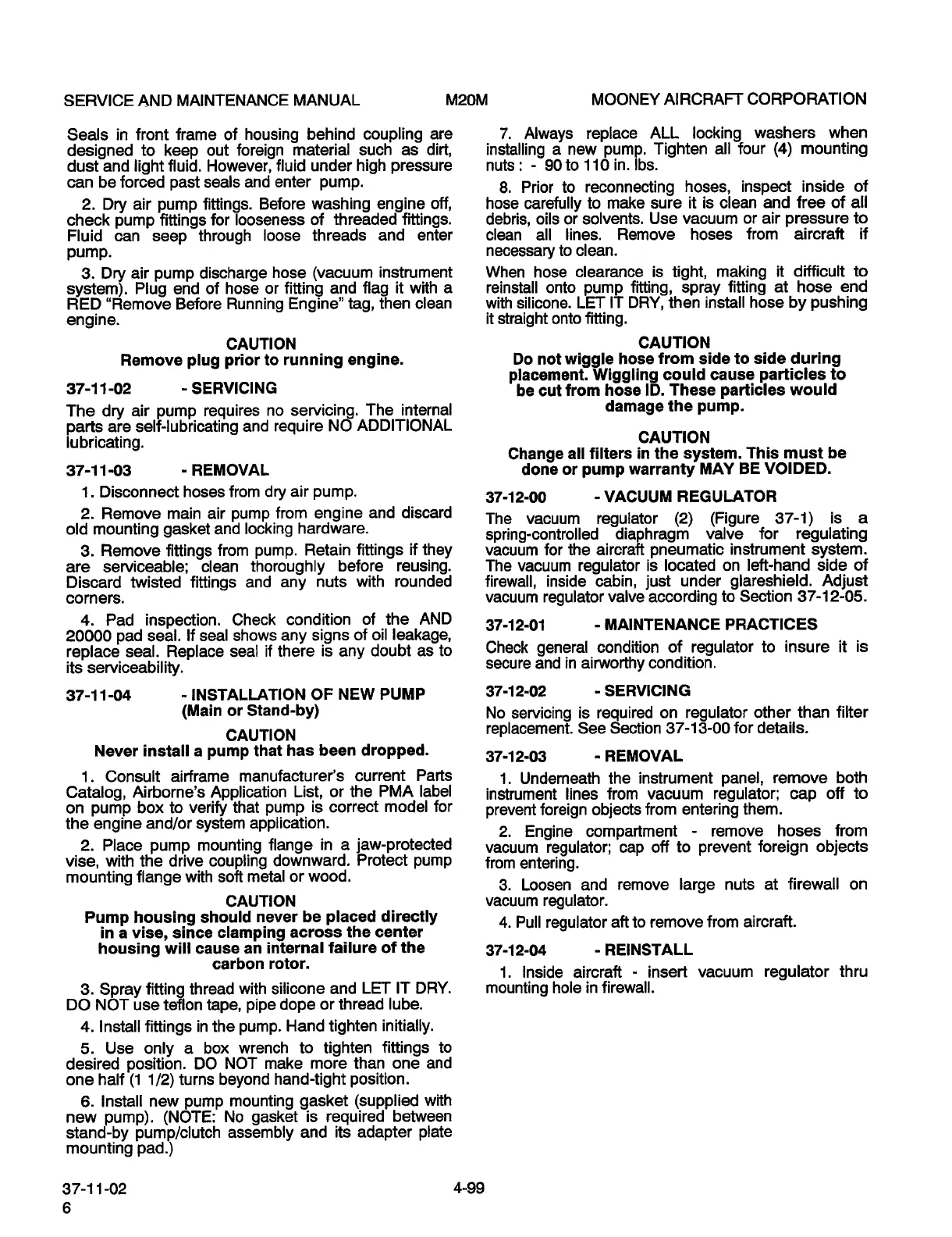 Mooney M20M - Maintenance Practices; Reinstall; Removal; Servicing