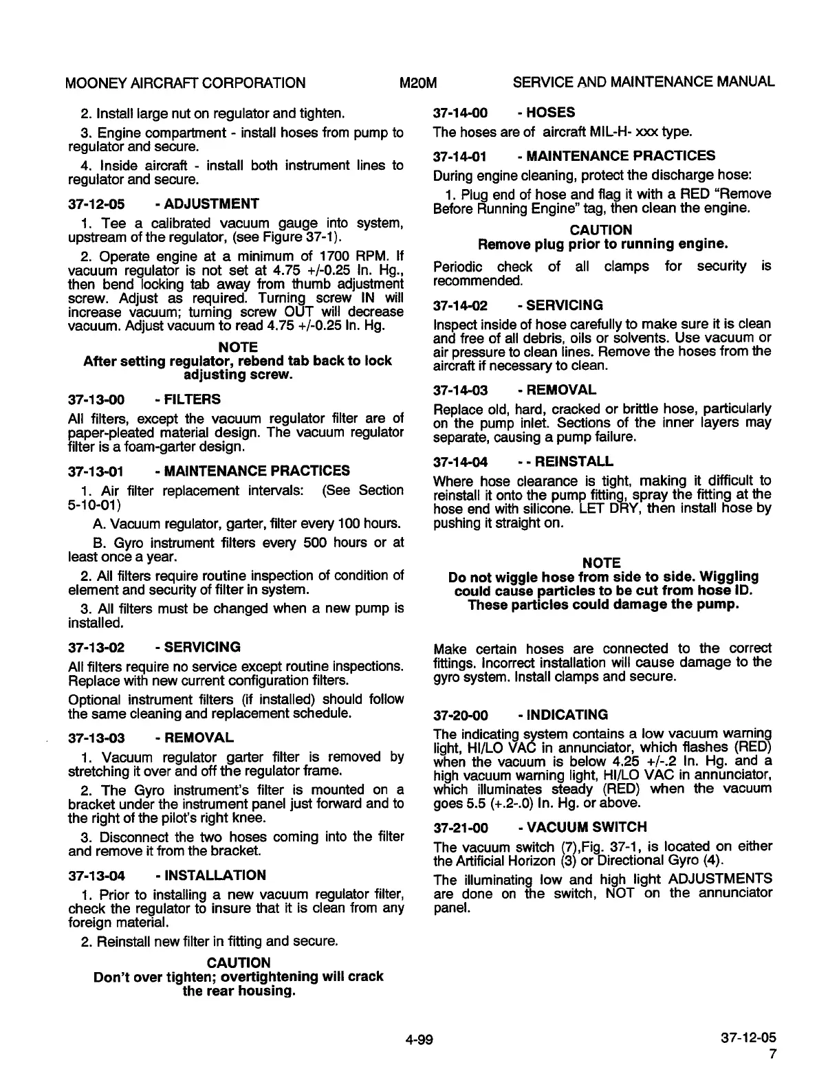 Mooney M20M - Adjustment; Filters; Hoses; Maintenance Practices