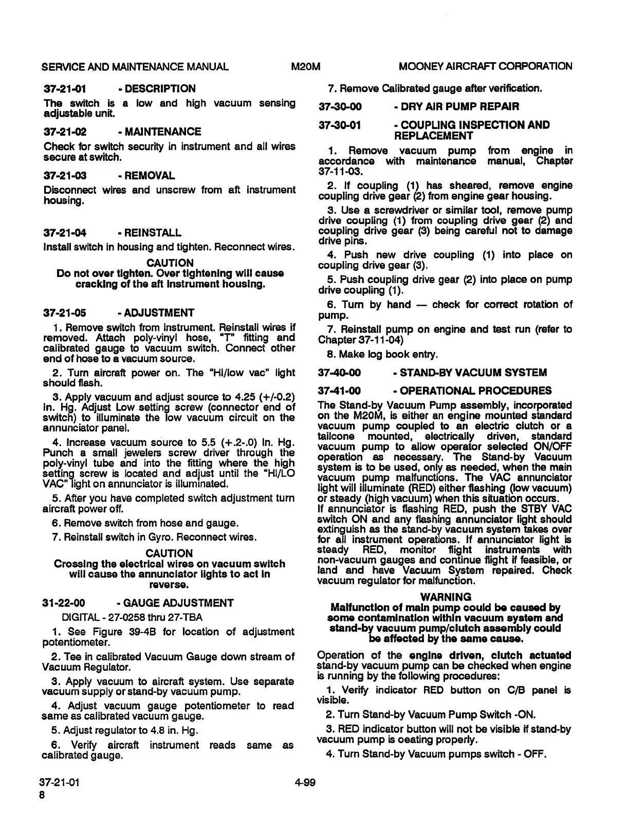 Mooney M20M - Adjustment; Description; Operational Procedures; Reinstall