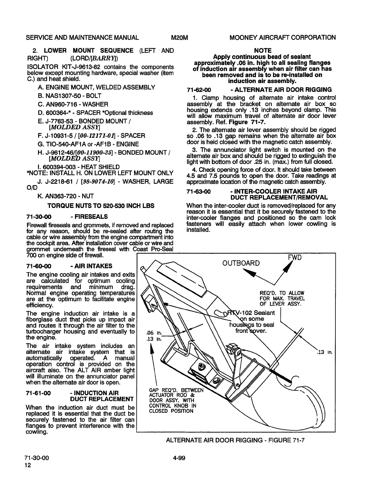 Mooney M20M - Alternate Air Door Rigging; Engine Mounts; Fireseals; Intercooler Intake Air Duct Replacement;Removal