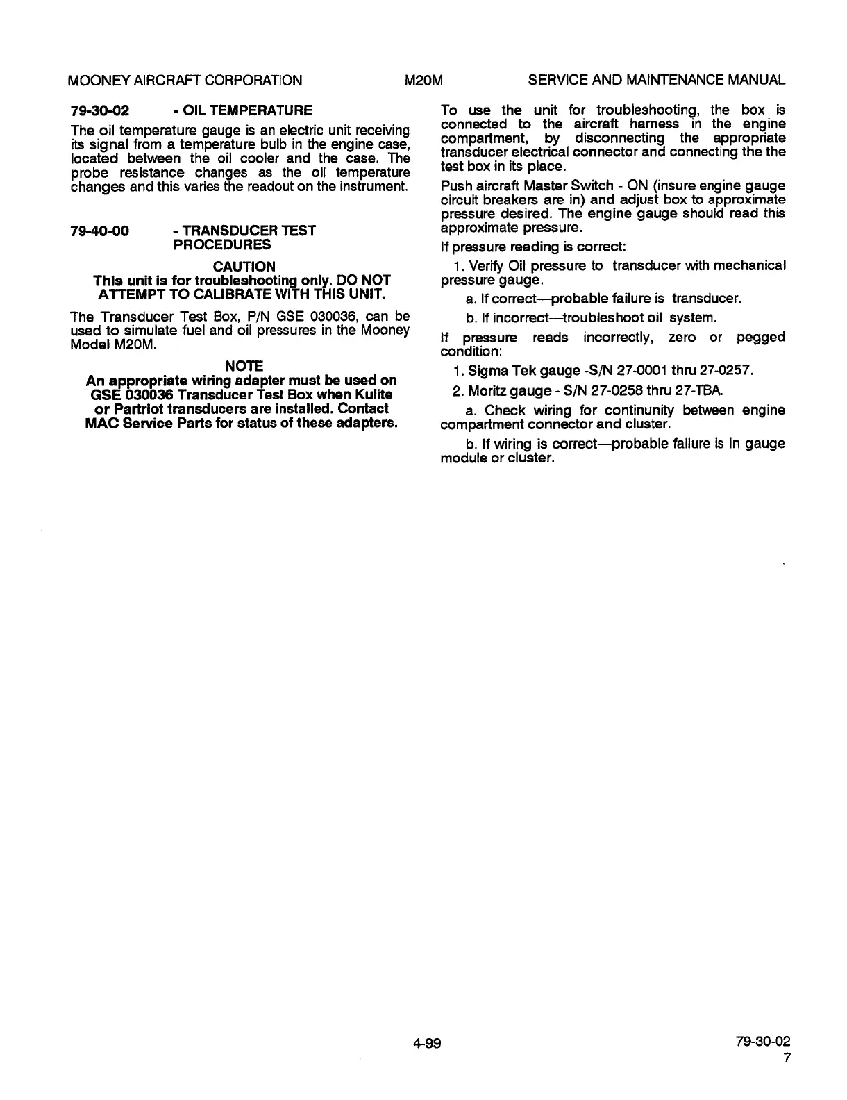 Mooney M20M - Oil Temperature; Transducer Test Procedures