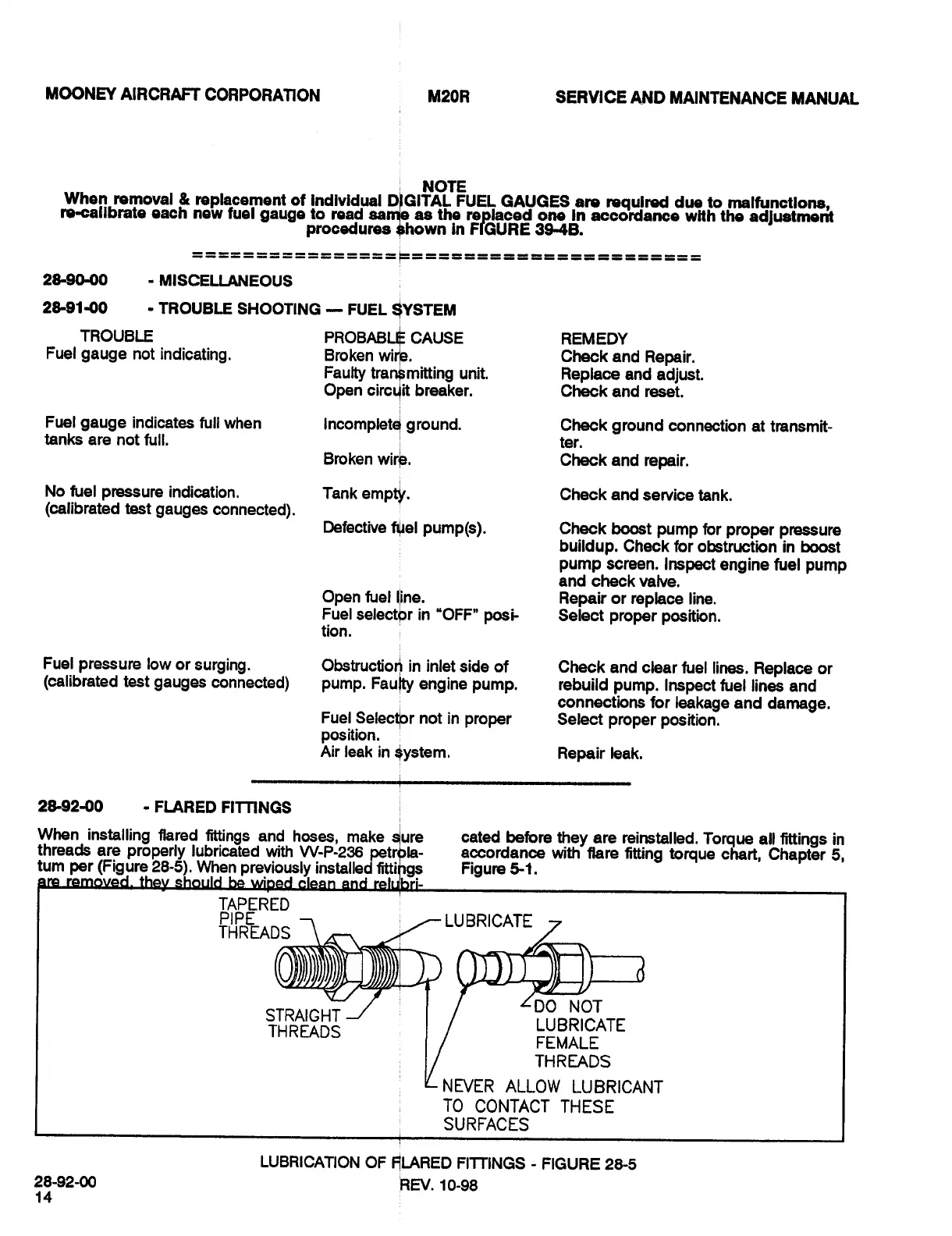 Mooney M20R - Flared Fittings; Fuel System Troubleshooting