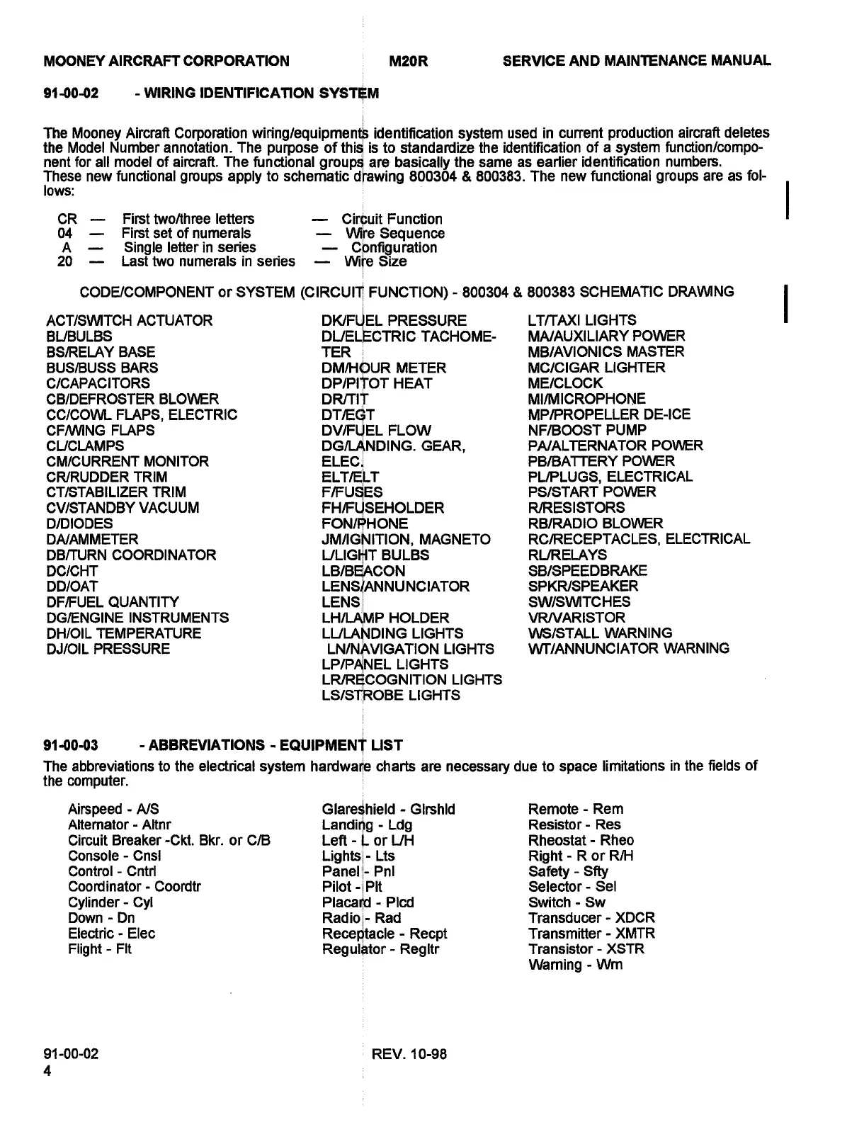 Mooney M20R - Abbreviations to the Electrical System Hardware Charts; Wiring Identification System