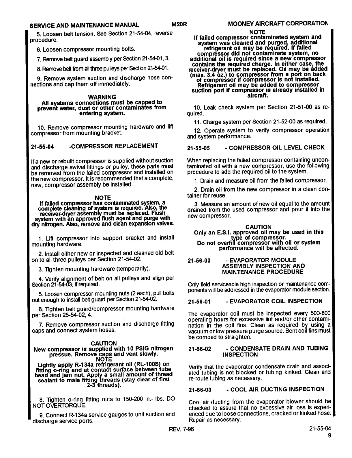 Mooney M20R - Compressor Oil Level Check; Compressor Replacement; Evaporator Coil Inspection; Mooney Aircraft