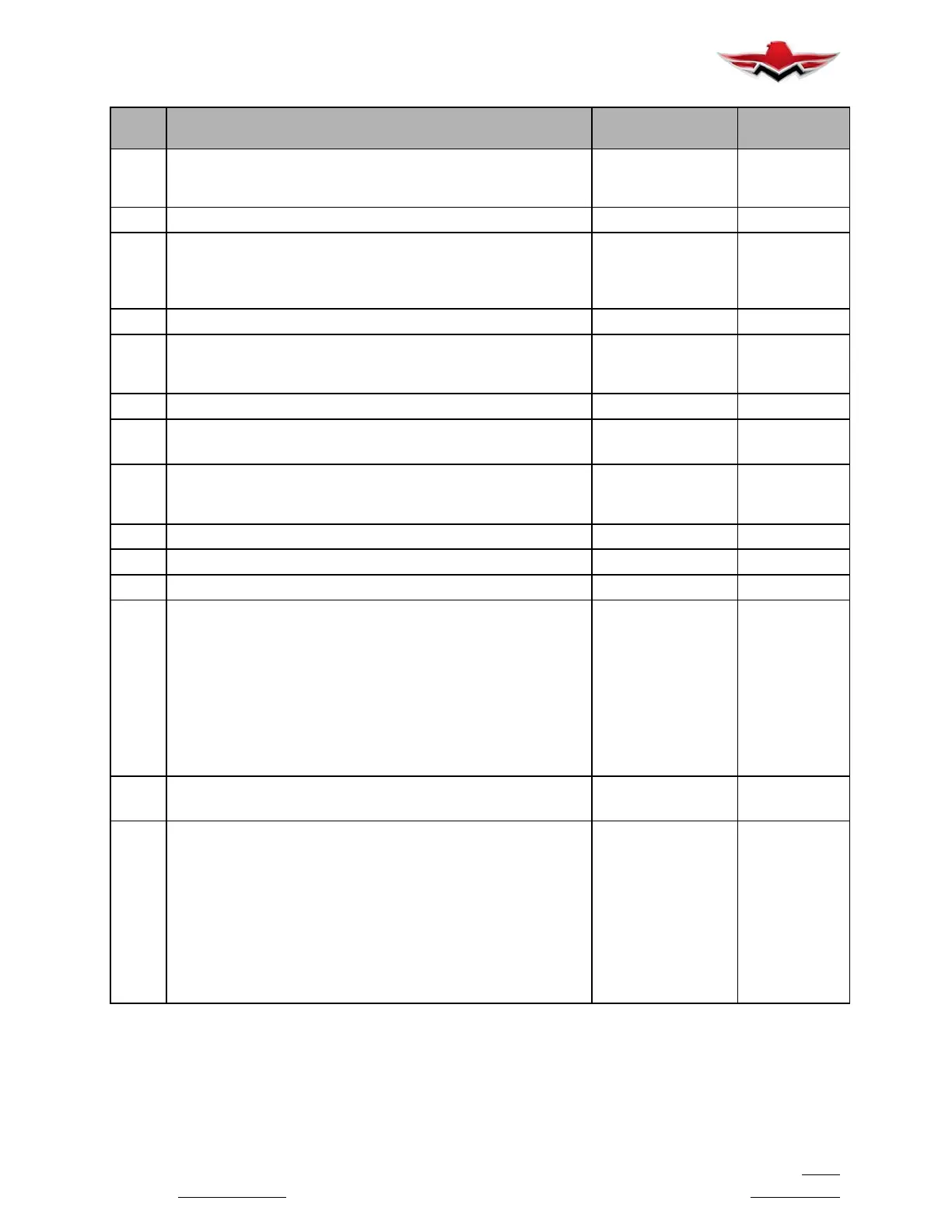 ITEM DESCRIPTION LUBRICATION