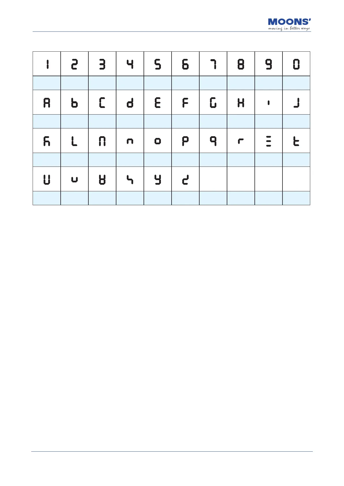 Appendix 1: LED display character comparison table