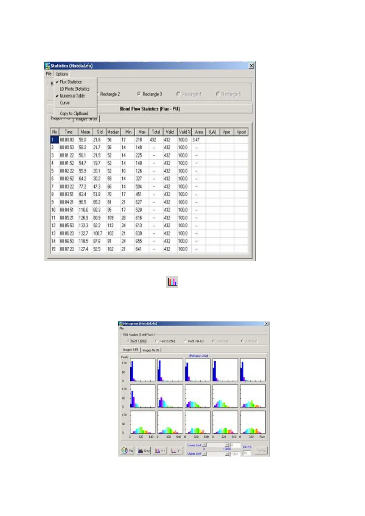 After defining Regions of Interest (ROI, see Section14) for the repeat images histograms (section