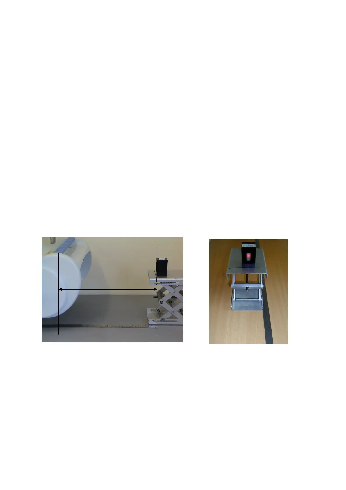 2.6 Set up the open face of the calibration block 29cm from the front panel of the moorLDI (below left).