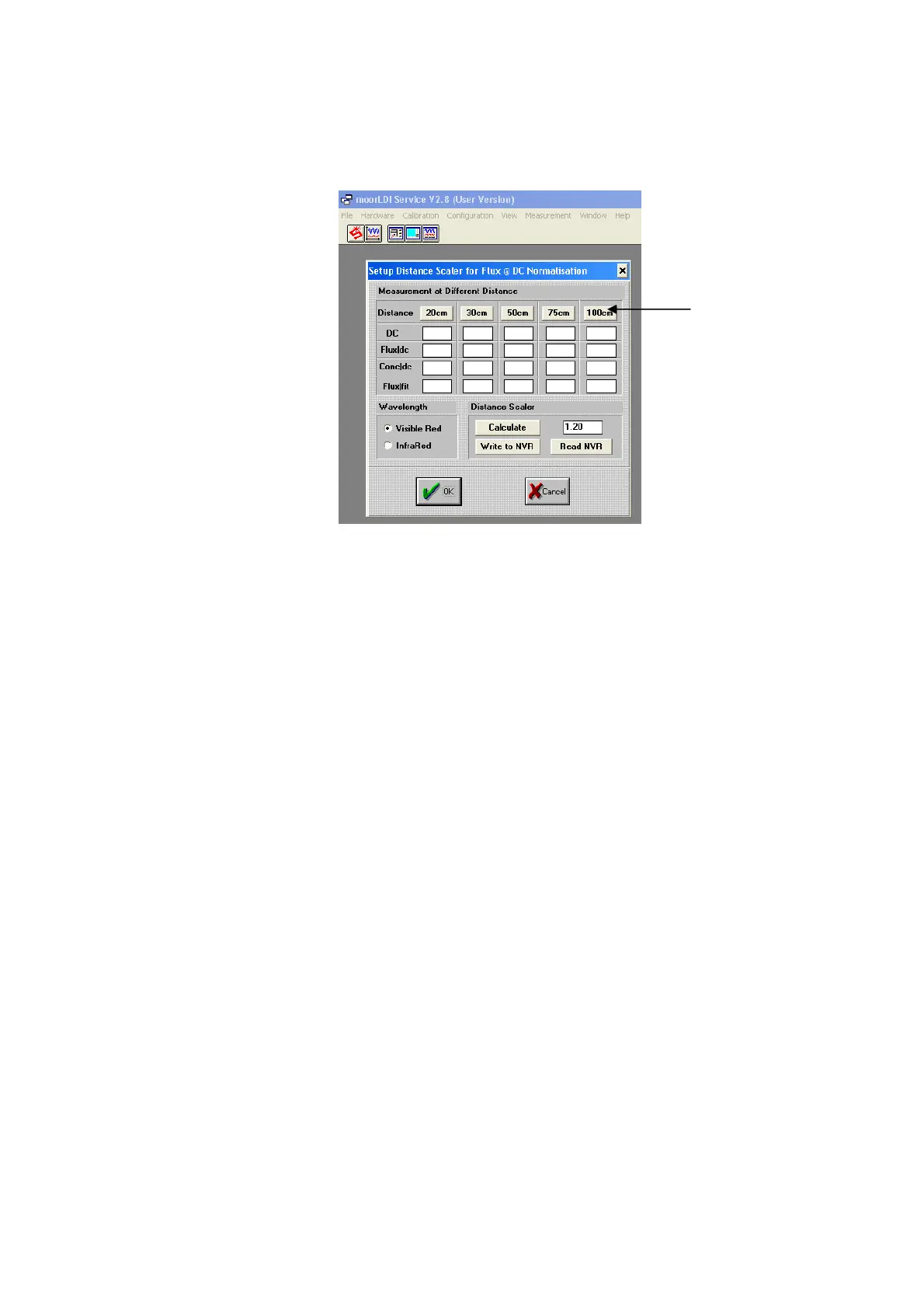 aimed at the centre of the calibration bottle. Click the 100cm button to perform a flux measurement.