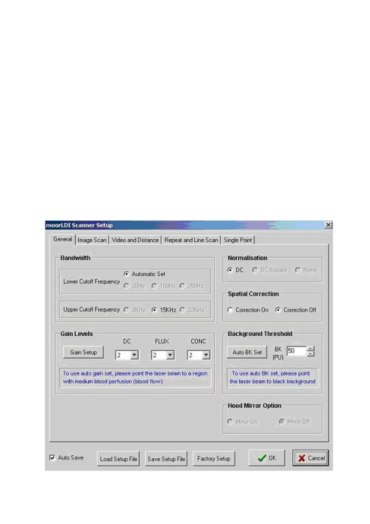 6.3.4 GENERAL WINDOW OF SCANNER SETUP
