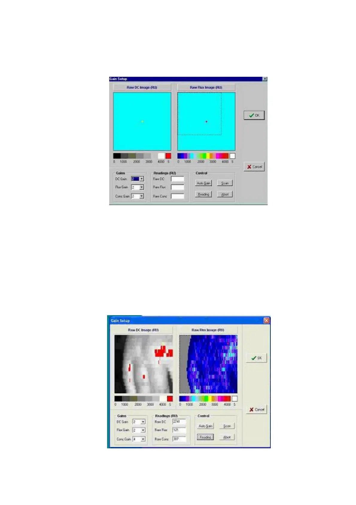 image); increase gains when flux is low and a longer scan distance is used (to make full use of
