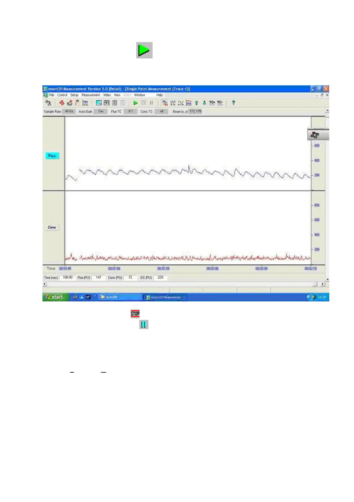 The single point measurement traces of flux and conc are stored using the file store icon or by