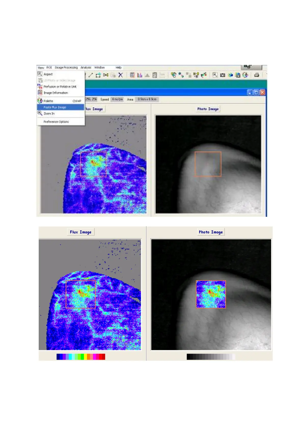 One or more (uptp 5) rectagular ROIs on the Flux image can be pasted on to the Photo Image.