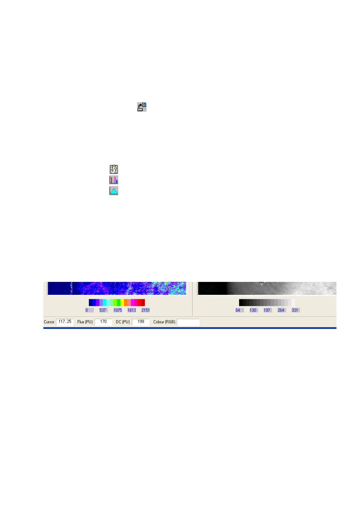 By moving the cursor over the image, the flux and dc values at the cursor position are displayed in