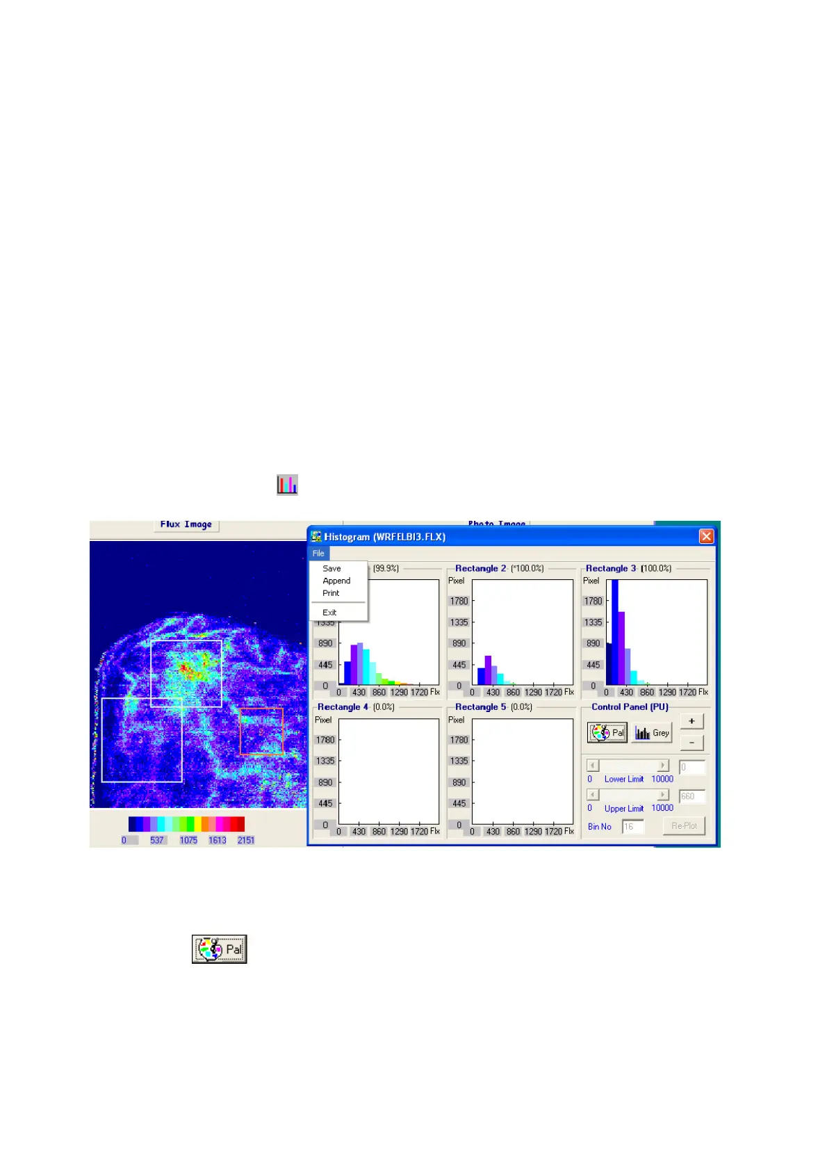 Select the histogram icon and a window similar to that shown in section 13.5.4 is displayed.