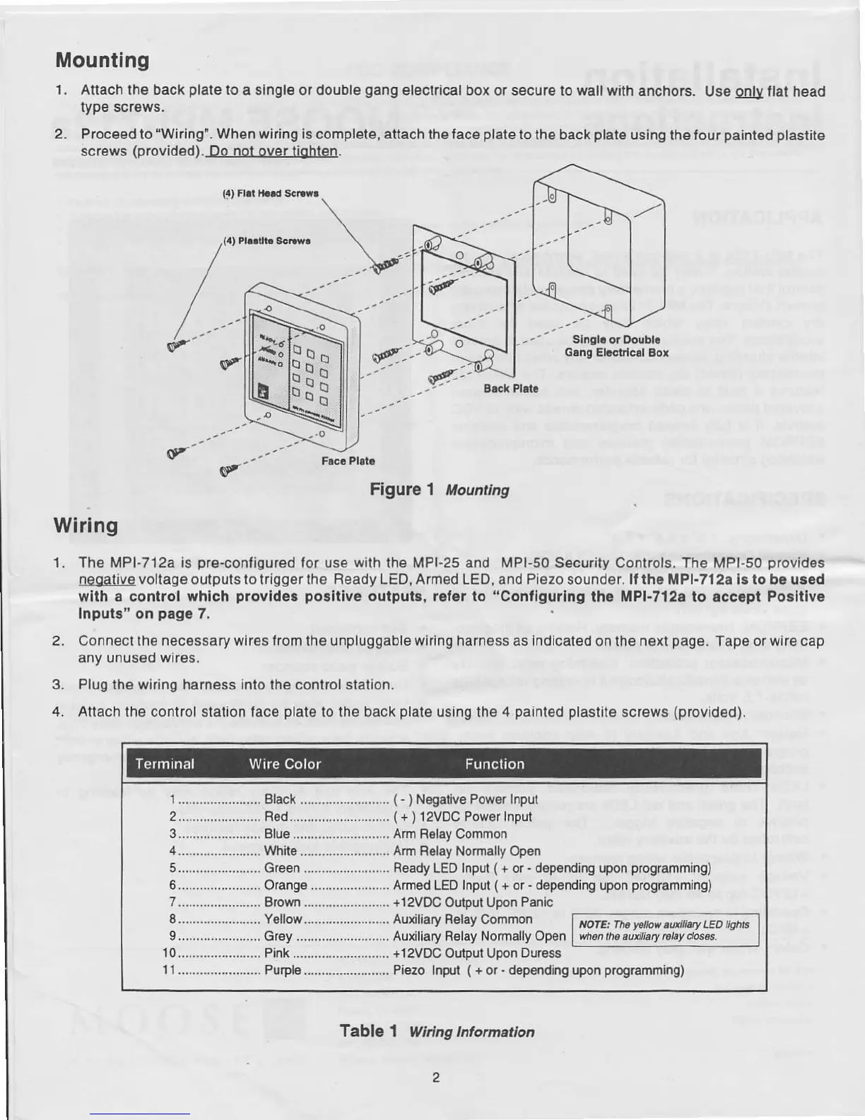 for use with th€ MPI-25 and MPI-50 Secu.ity Controls. Tho MPI-50