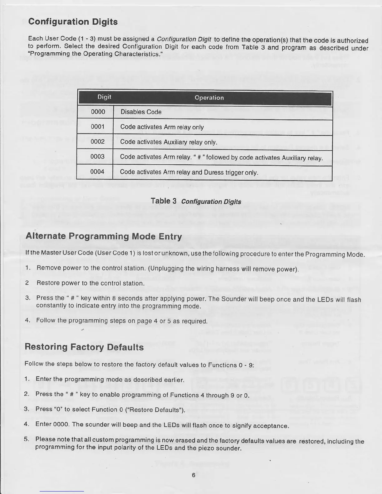 MOOSE MPI-712a - Configuration Digits Explained; Alternate Programming Mode Entry; Restoring Factory Defaults