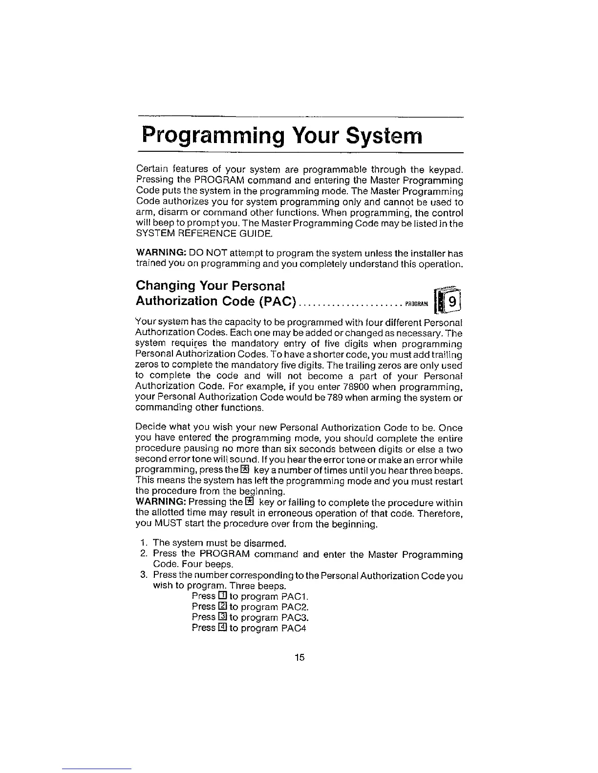 MOOSE System 911 - Programming Your System; Changing Your Personal Authorization Code (PAC)