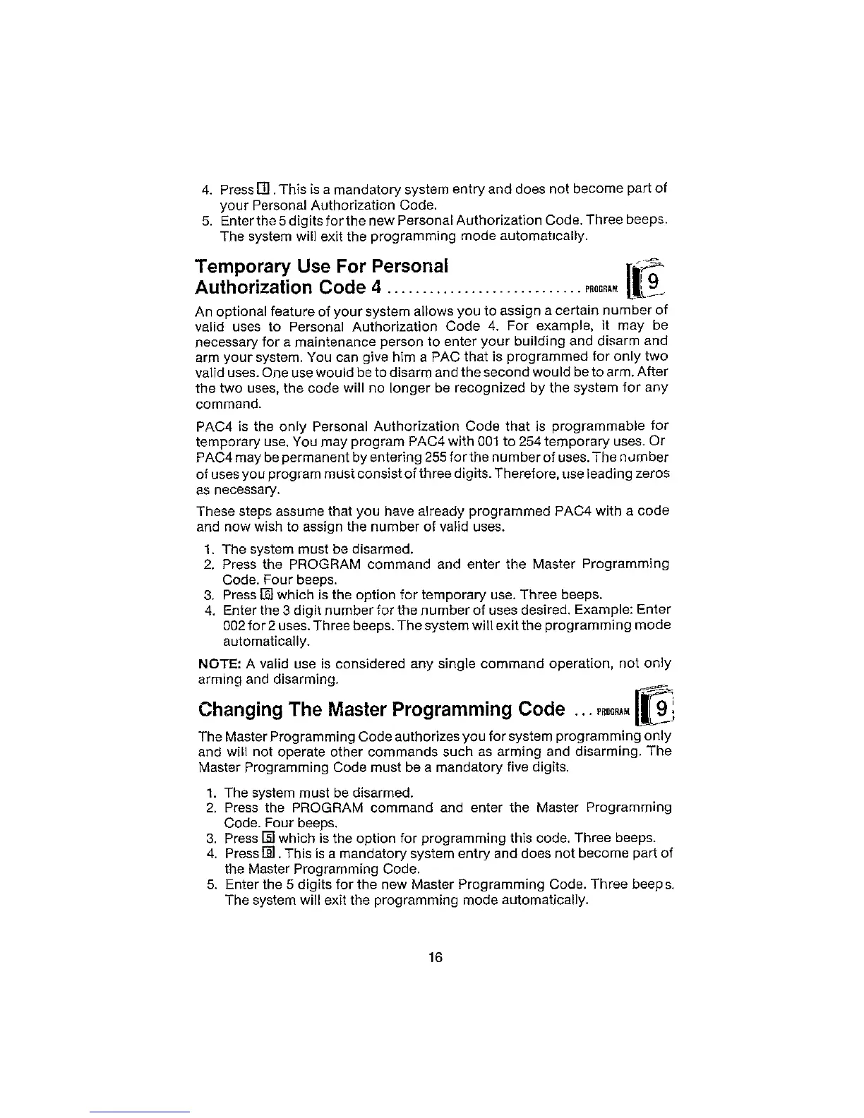 MOOSE System 911 - Temporary Use For Personal Authorization Code 4; Changing The Master Programming Code