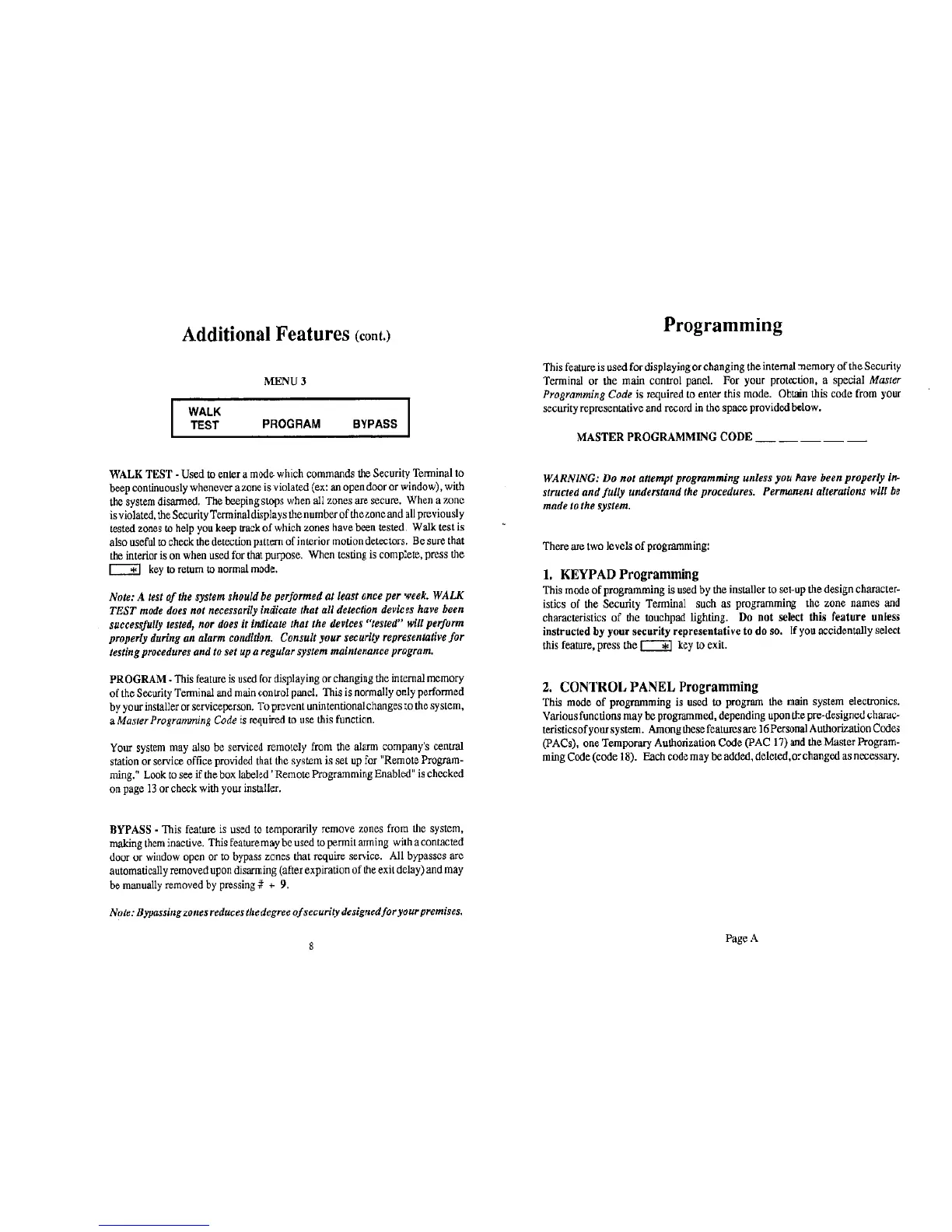 MOOSE Z1100E - Additional Features Menu; Menu Scroll Key; Zone Status; Alarm History