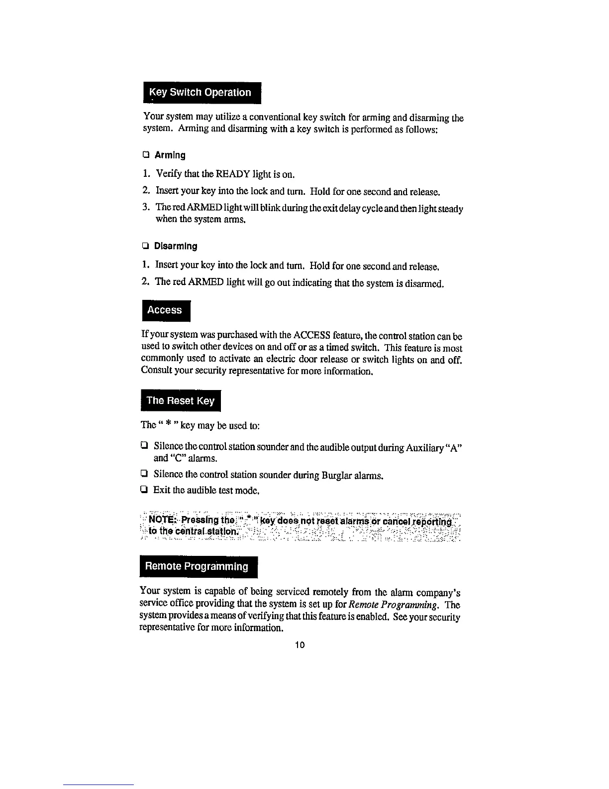 MOOSE Z700 - System Operation and Access; Key Switch Operation; The Reset Key Functionality