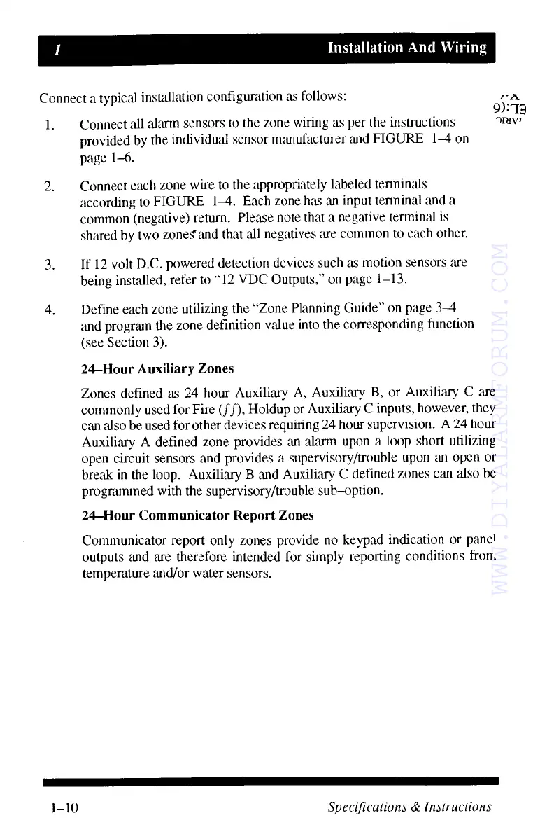 MOOSE Z800 - Installation And Wiring; 24-Hour Auxiliary Zones; 24-Hour Communicator Report Zones