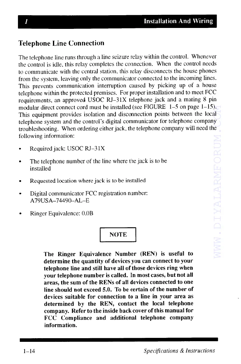 MOOSE Z800 - Installation And Wiring; Telephone Line Connection Requirements