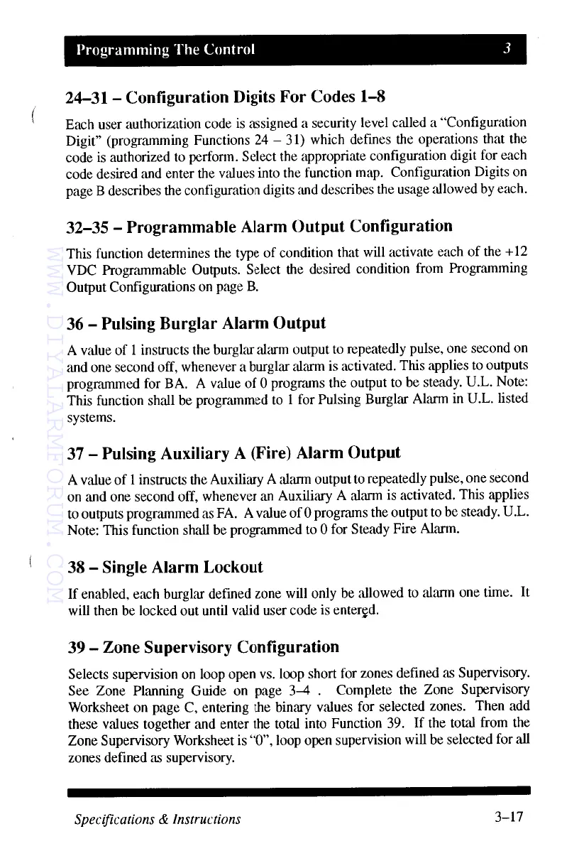 MOOSE Z800 - Programming The Control; Configuration Digits for User Codes; Programmable Alarm Output Configuration; Pulsing Alarm Output and Single Alarm Lockout